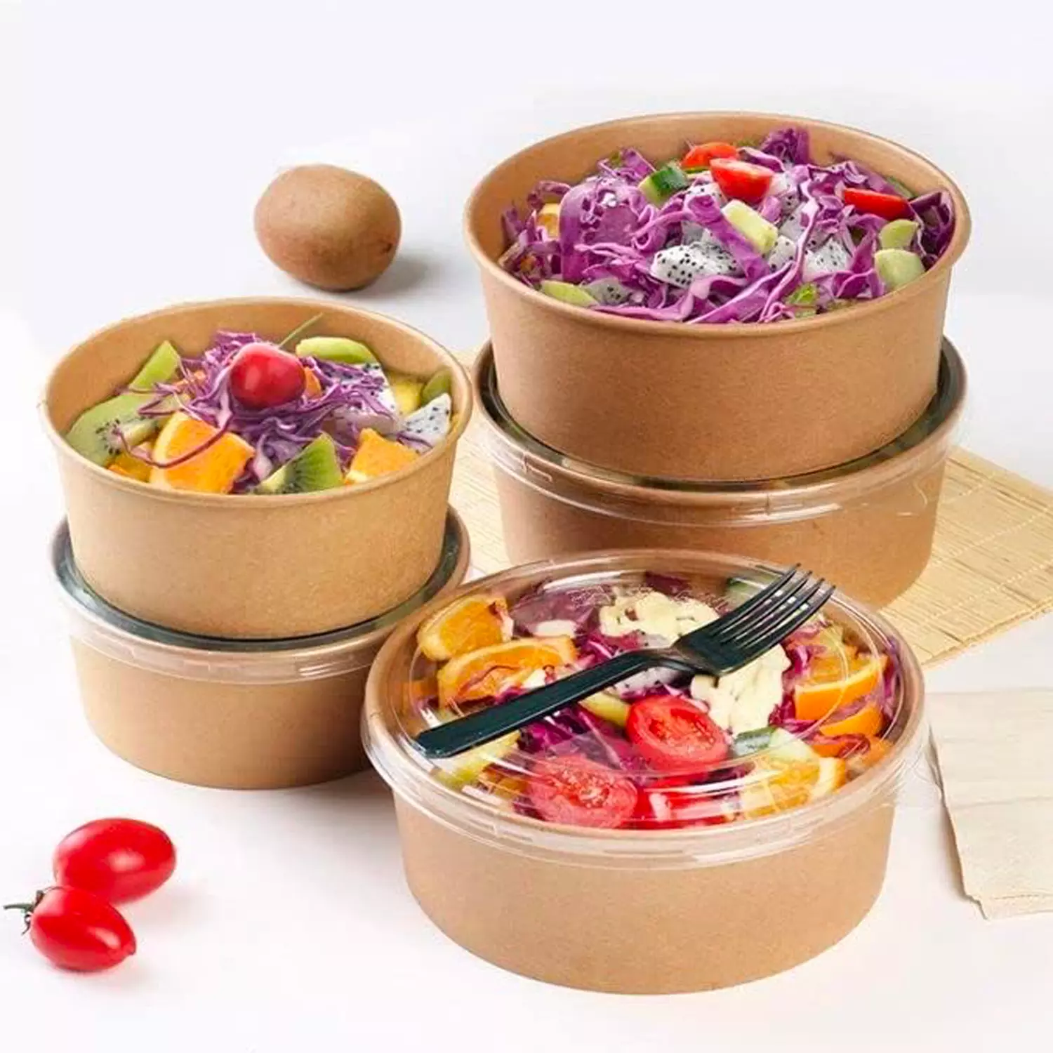 Durabilité Éprouvée : Le carton recyclé utilisé dans le bol est conçu pour résister aux rigueurs de la manipulation alimentaire. Par conséquent, vous pouvez compter sur sa robustesse pour protéger et préserver la fraîcheur de vos salades. Même dans les conditions les plus exigeantes, ce bol offre une protection fiable.