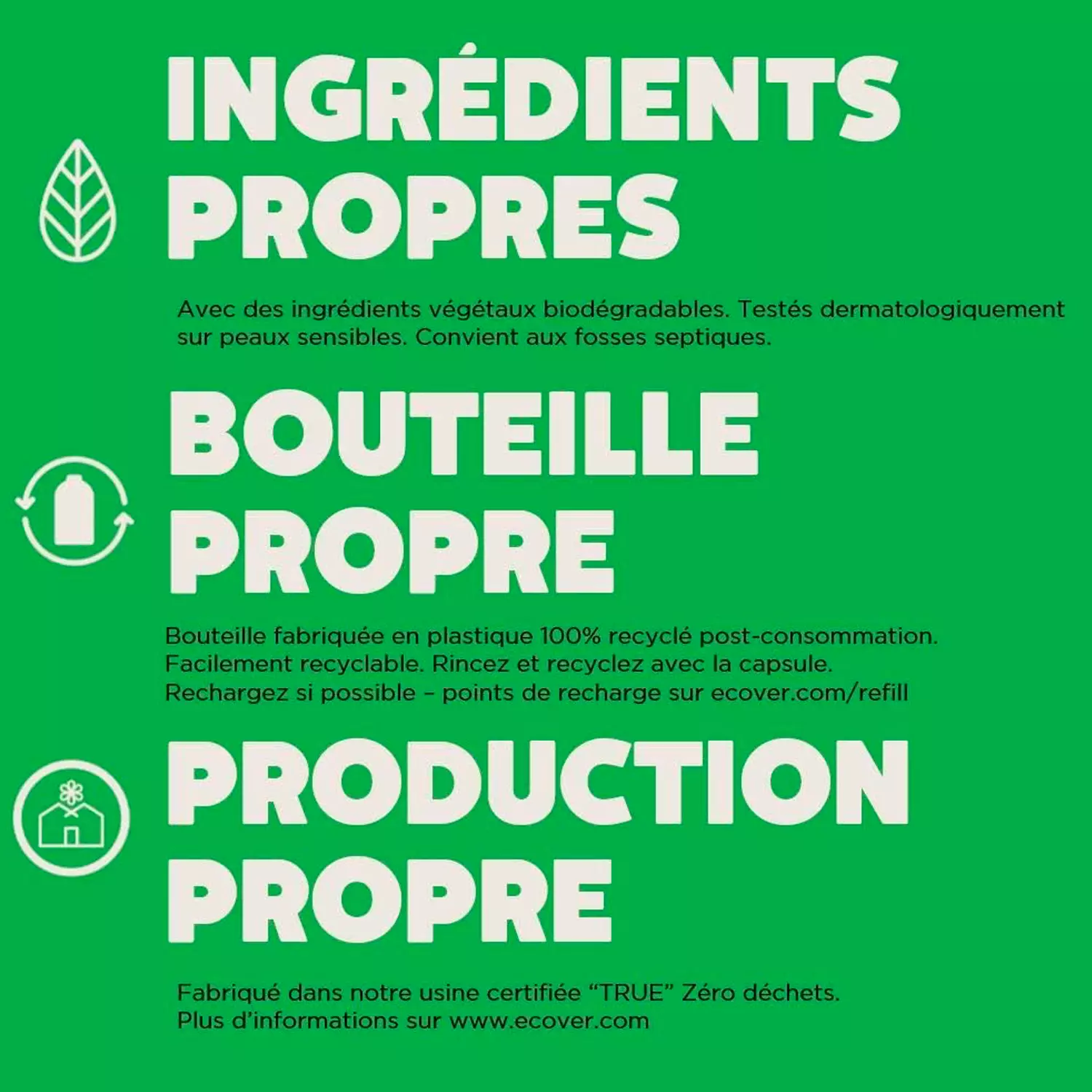 La composition d’EcoVer est soigneusement pensée pour minimiser son impact environnemental. En utilisant des ingrédients tels que l’eau, l’alcool dénaturé, le citrate de sodium, les acides gras et l’acide lactique, EcoVer garantit un nettoyage puissant tout en préservant l’environnement.